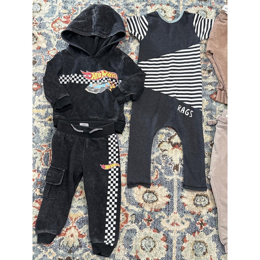 Rags Zara Hot Wheels Bundle Boys 12-18M Black Brown Checkered Romper Joggers GUC