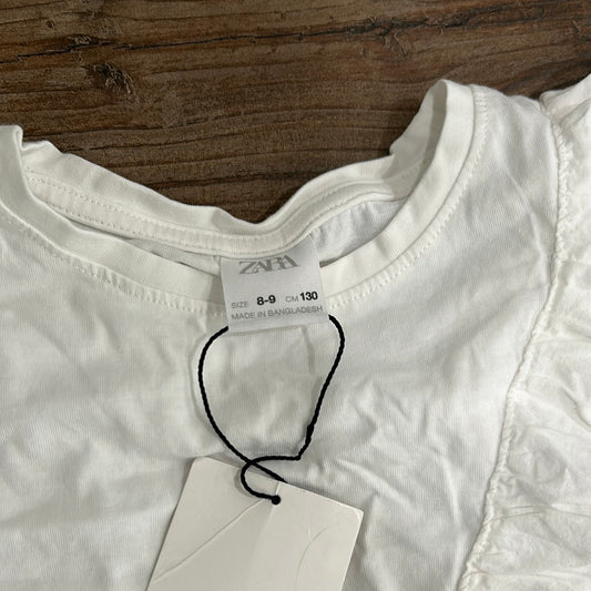 Girls Size 8/9 Zara White Ruffle Shirt - New With Tags
