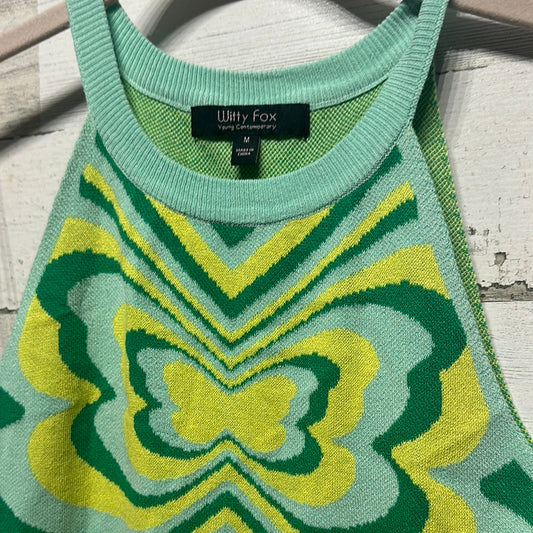 Women's Size Medium Witty Fox Green and Yellow Butterfly Cropped Tank Top - Good Used Condition