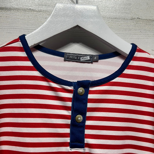 Boys Size 6 Millie and Maxx Red Striped Henley Shirt - Good Used Condition
