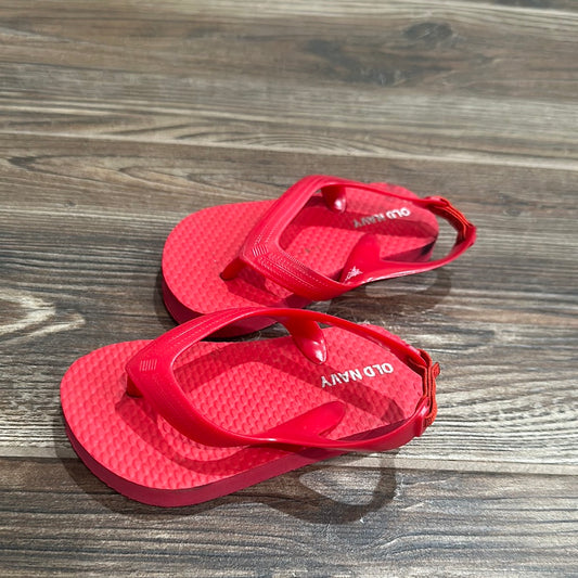 Boys Size 5 Toddler Red Flip Flops With Heel Strap - good used condition