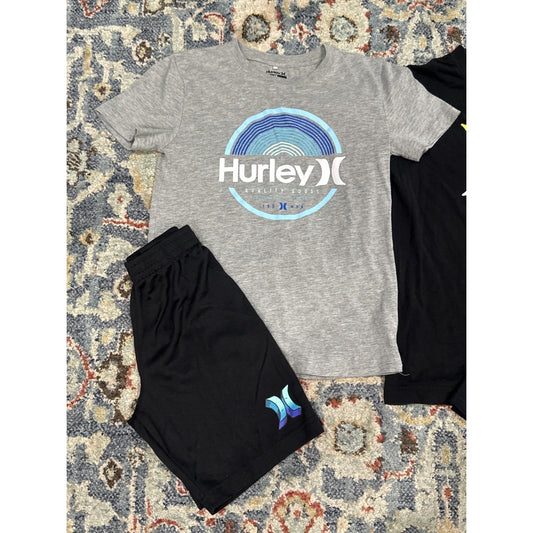Hurley Under Armour Shorts T-Shirt Set Boys 7/8 Black Grey 4pc Bundle