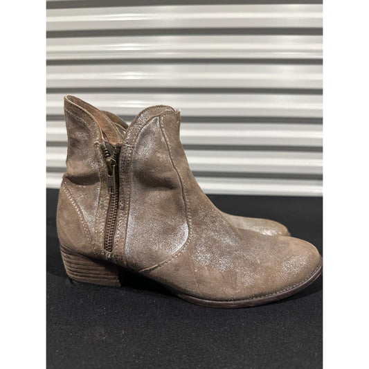 Bed Stu Gaze Ankle Boots Womens 8.5 Tan Silver Metallic Leather Side Zip