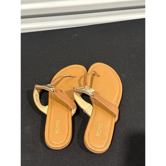 Michael Kors Thong Sandals Women 8M Tan Gold Logo Plate
