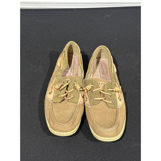 Sperry Boat Shoes Womens 9 Tan Canvas Corduroy Quilted Loafers