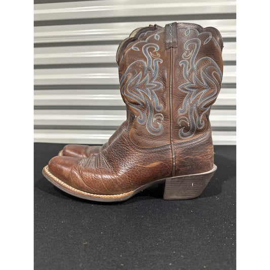 Ariat Heritage Western Boots Women 8B Brown Leather R-Toe Embroidered
