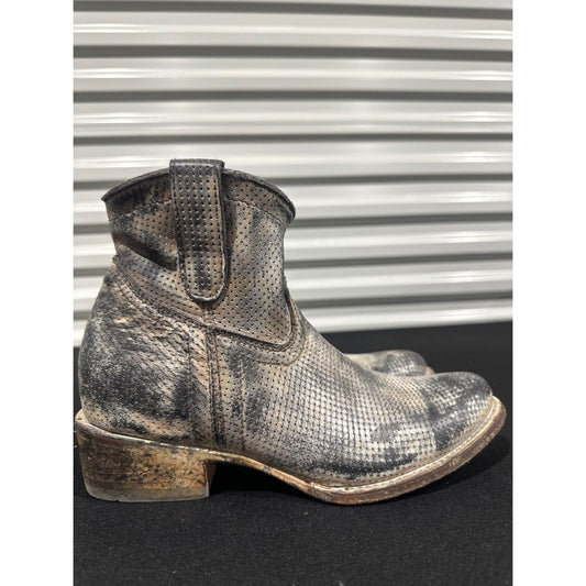 Corral Ankle Boots Women 9 Gray Distressed Perforated Leather Western GUC