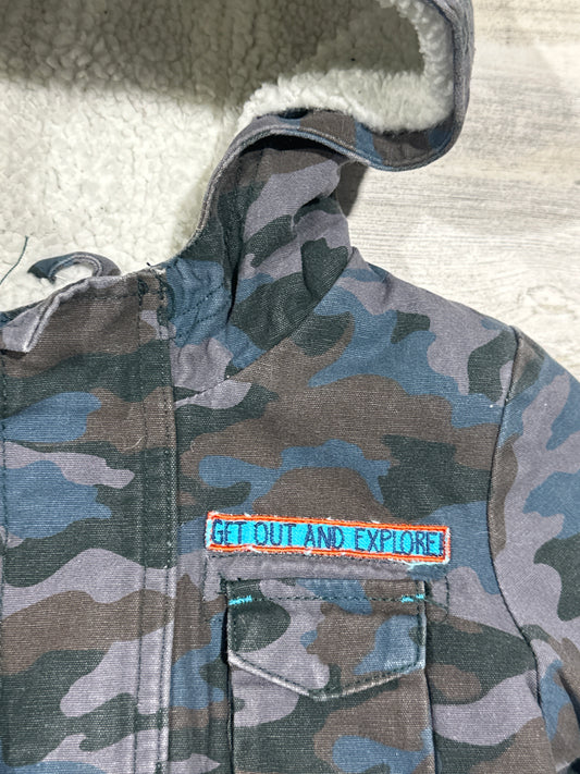 Camo Sherpa Lined Cargo Style Hooded Jacket - Cat & Jack - Boys Size 12m - Good Used Condition