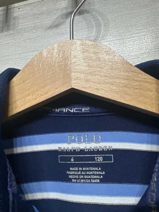 Polo Ralph Lauren Blue Striped Performance Polo Shirt - Boys Size 6 - Very Good Used Condition