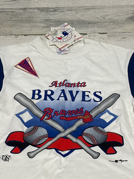 90s Vintage Atlanta Braves Baseball MLB Embroidered T-Shirt - 1994 - Kids Size Large 14-16 - Deadstock - New With Tags