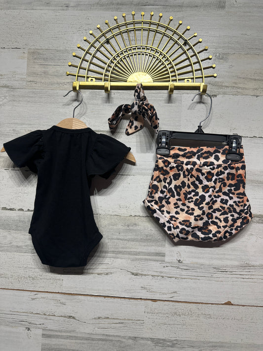 Leopard Outfit Set (3 Pieces) - Fits Like Girls Size 3-6m - Very Good Used Condition
