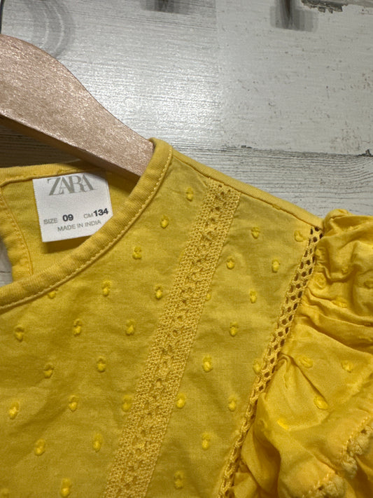 Zara Yellow Ruffle Sleeve Swiss Dot Top - Girls Size 9 (134cm) - Very Good Used Condition