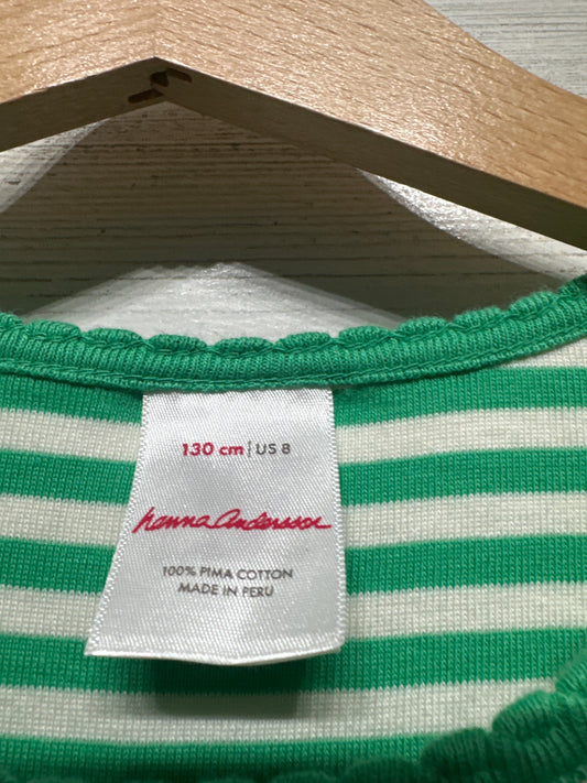 Hanna Andersson Pima Cotton Green Striped Shirt - Girls Size 8 - Very Good Used Condition