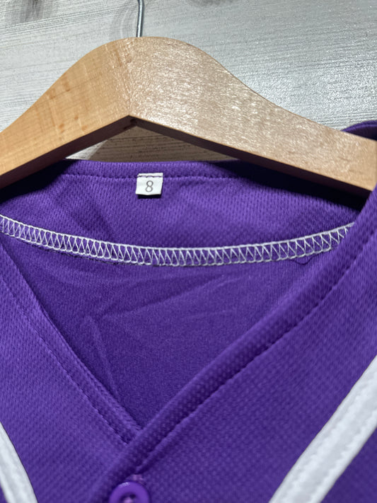 Purple and White Button Up Jersey Shirt - Youth Size 8 - Very Good Used Condition