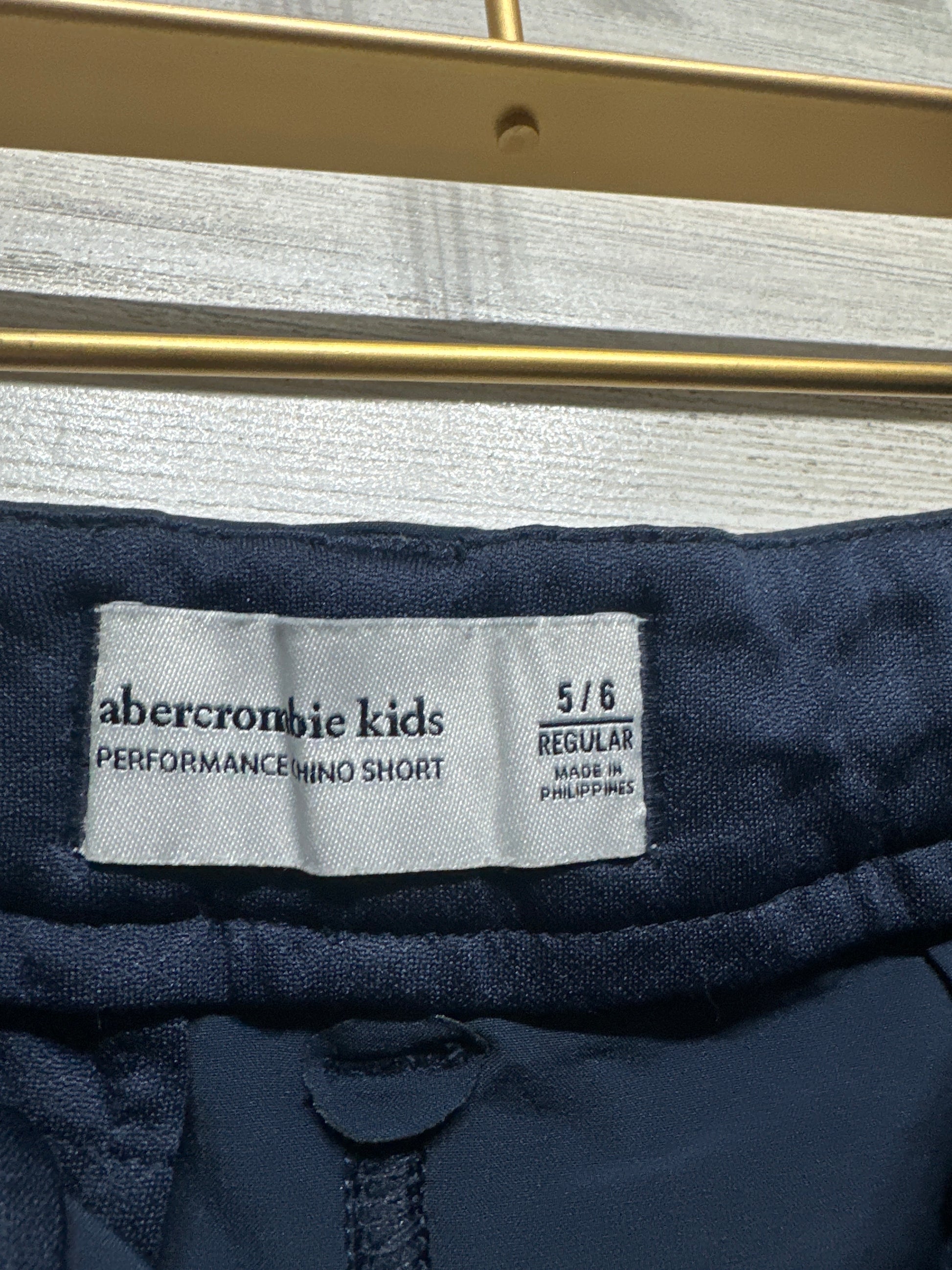 Boys 5/6 Abercrombie Kids Navy Blue Adjustable Waist Performance Shorts -Play Condition*faux button is missing. Shorts have an internal clasp - the button doesn’t actually hold the shorts closed