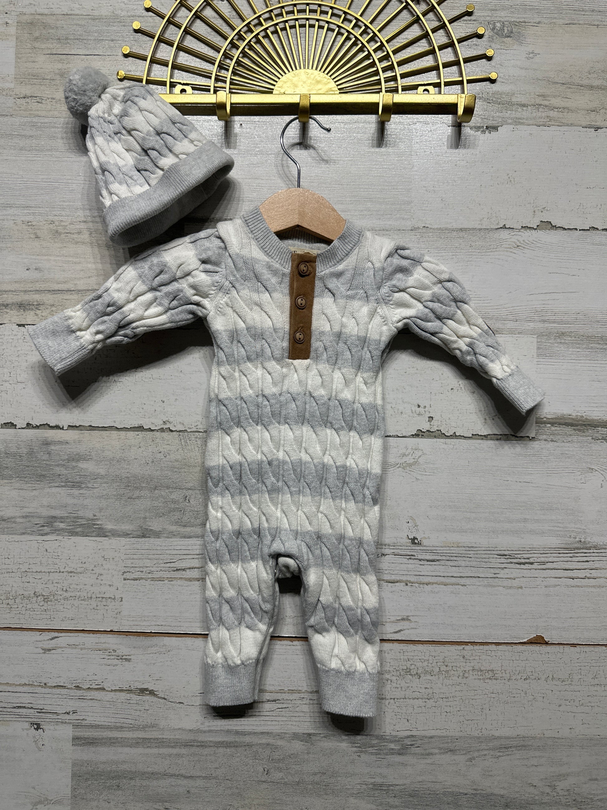 Boys Size 0-3m Hope & Henry Organic Cotton Sweater Romper and Matching Hat - Very Good Used Condition