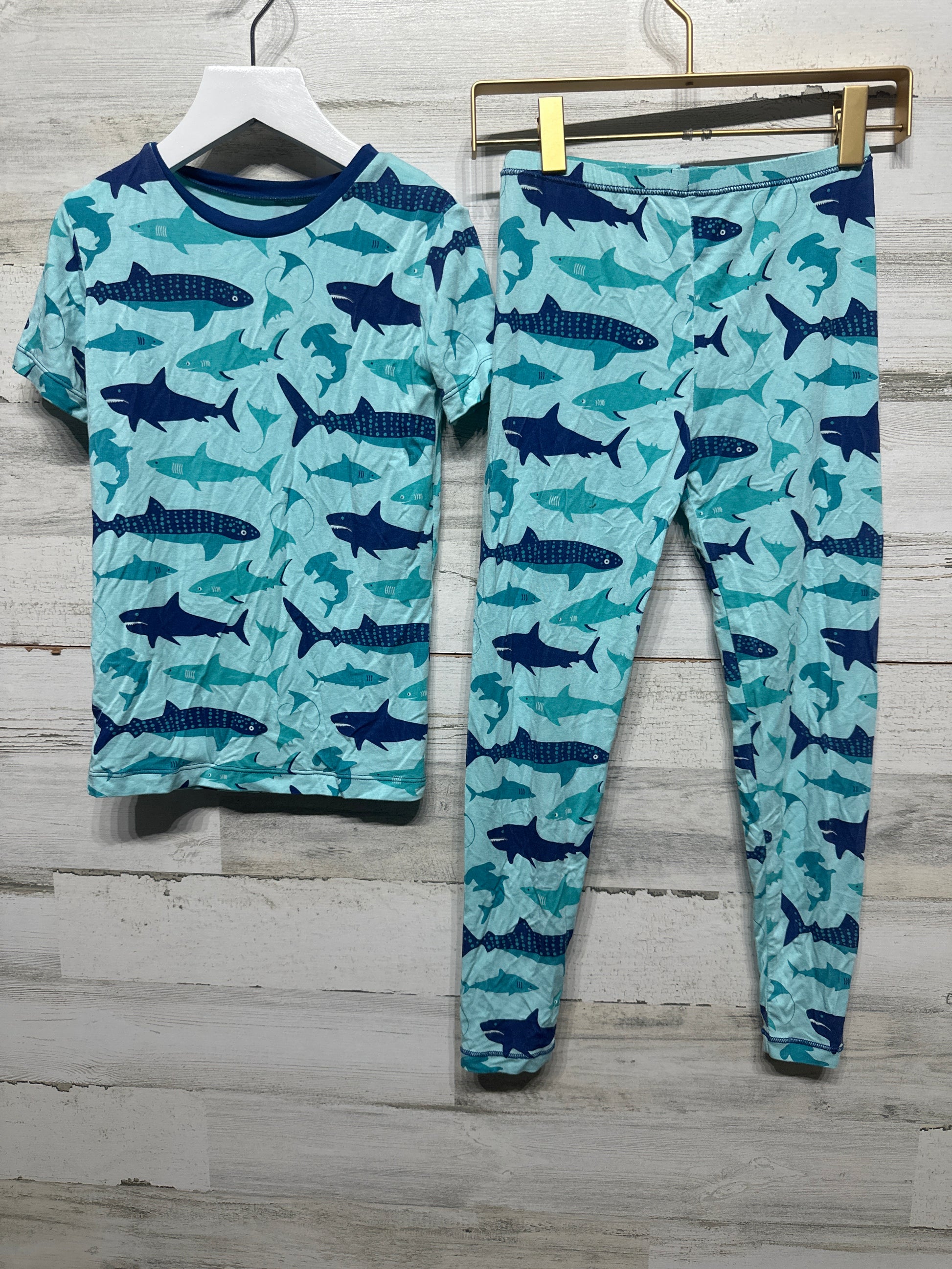 Boys Size 8 Kickee Pants Bamboo Shark Fitted Pajama Set - Very Good Used Condition