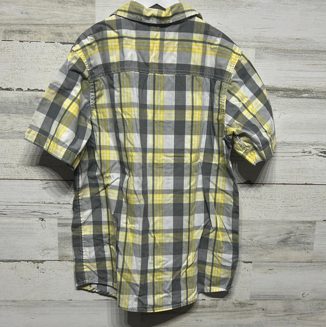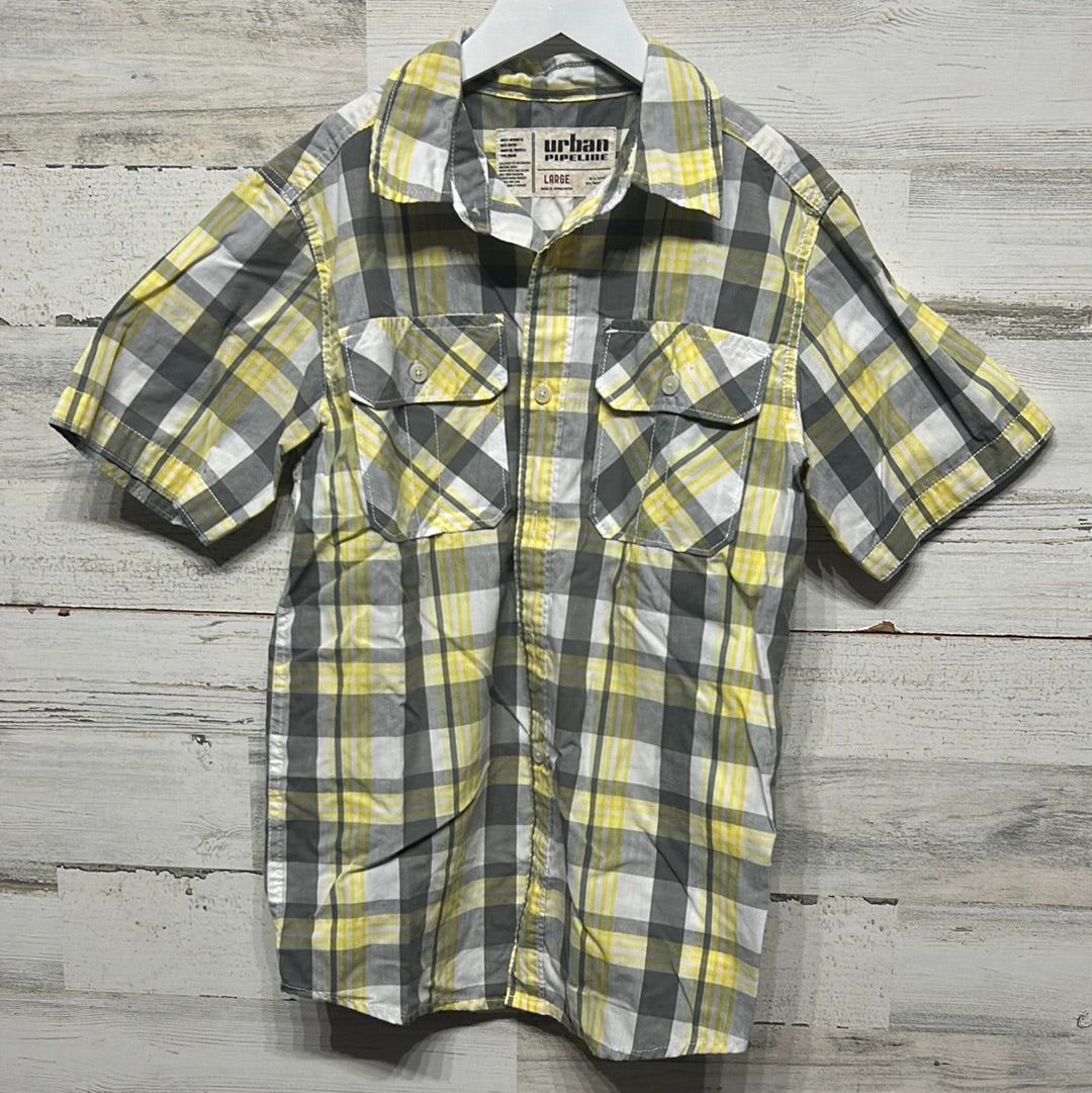 Boys Size Large Urban Pipeline Grey and Yellow Plaid Button Up - Good Used Condition