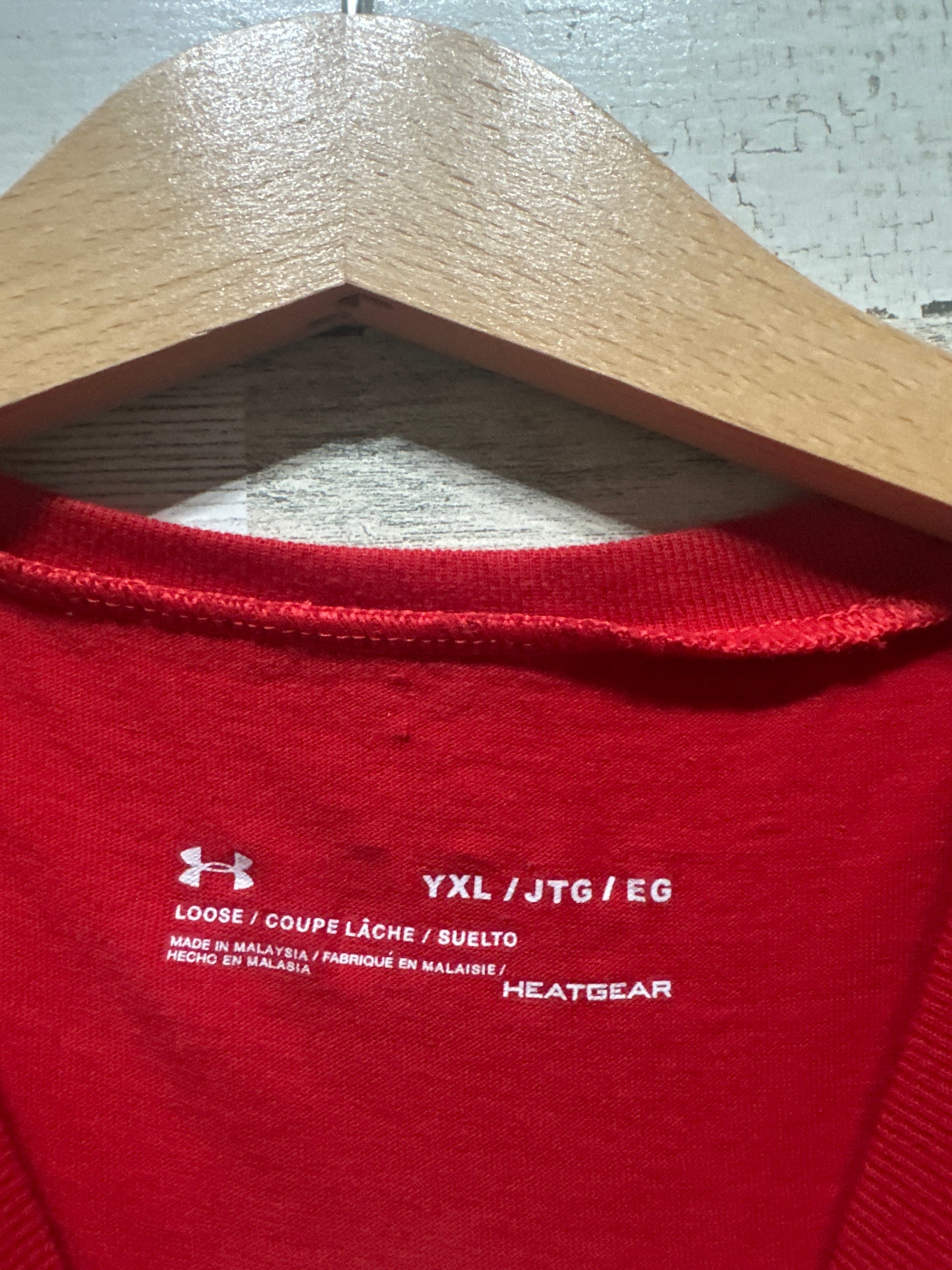 Boys Size Youth XL Loose Under Armour Heat Gear Red T-Shirt - Good Used Condition