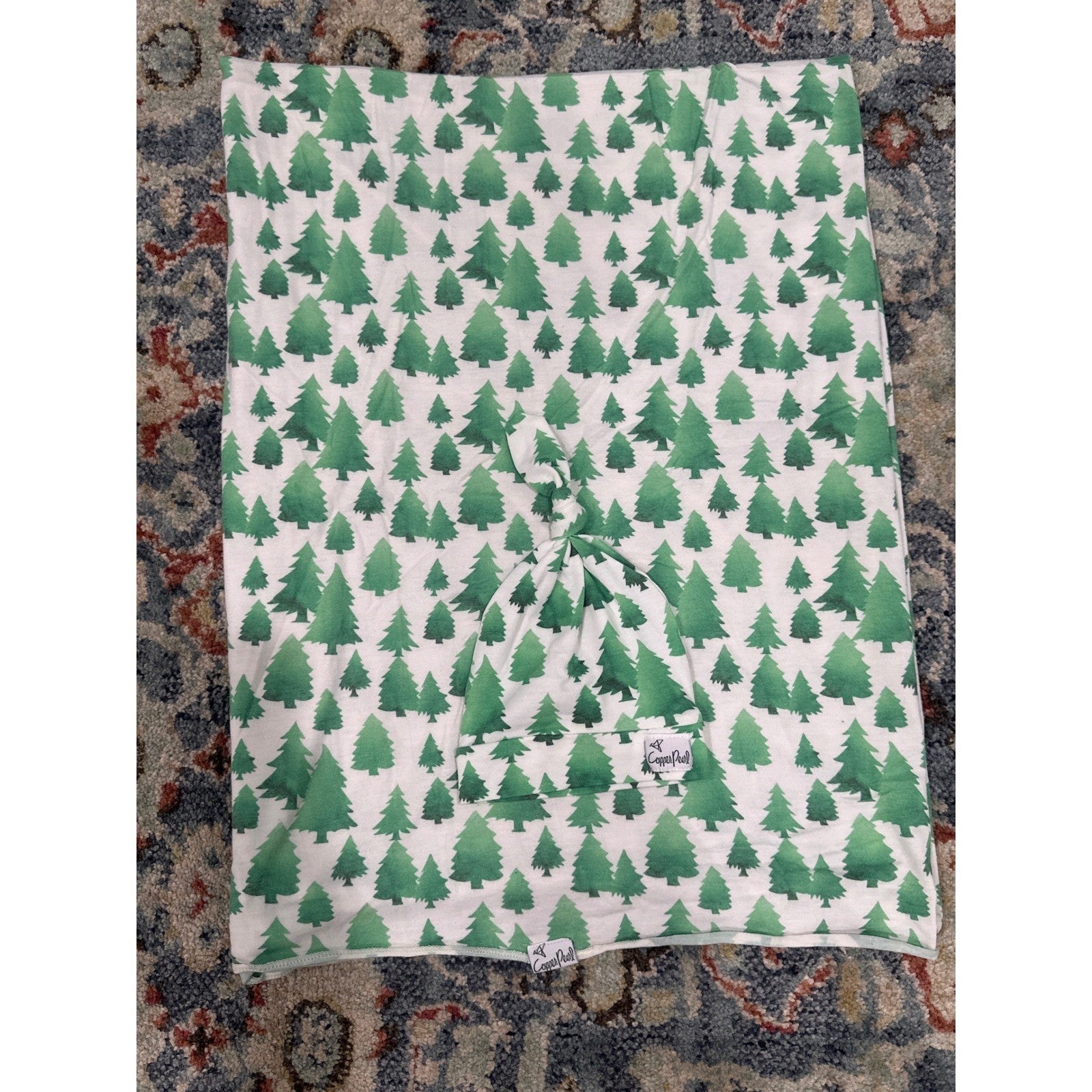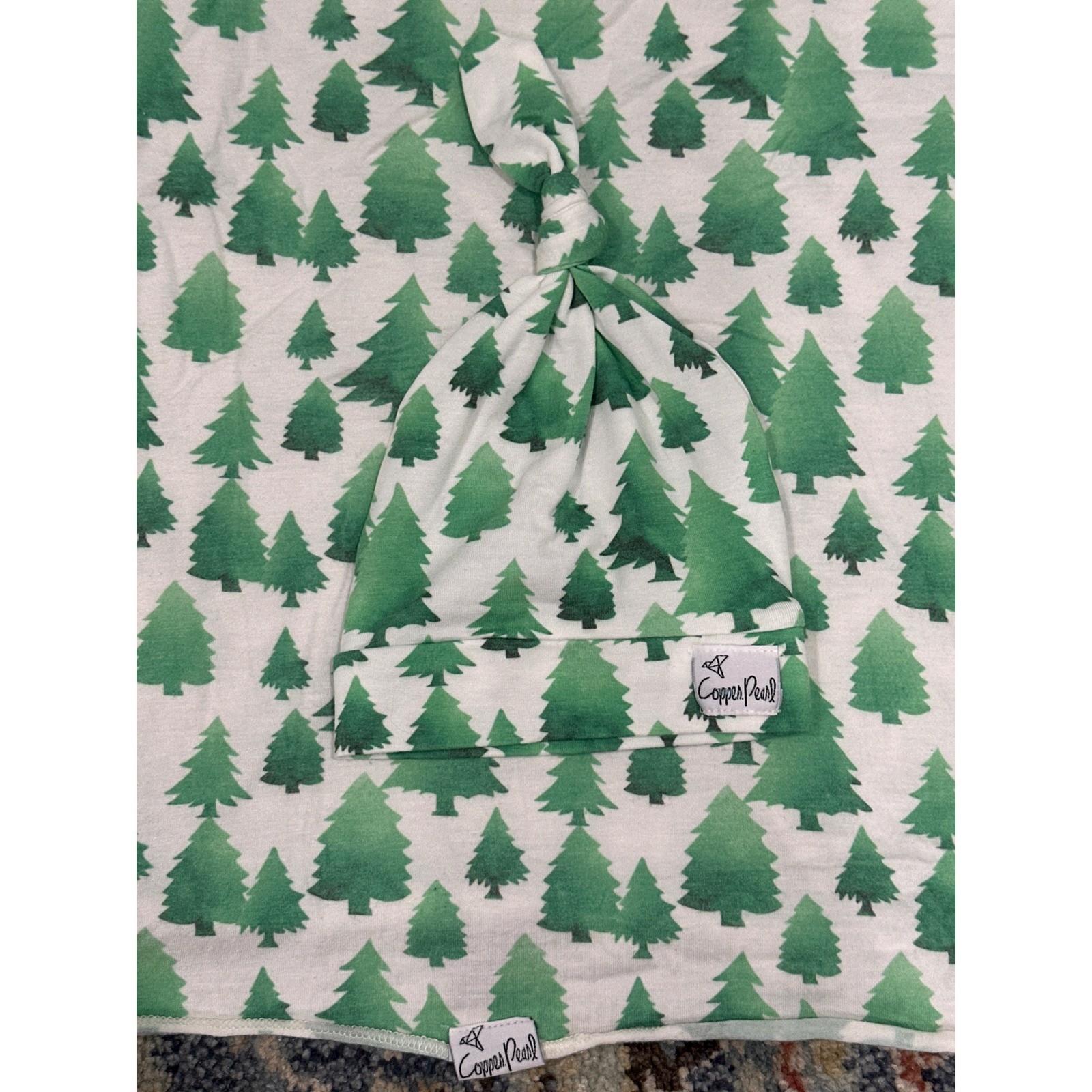 Copper Pearl Swaddle Blanket Hat Set Kids Newborn Green Pine Tree Print