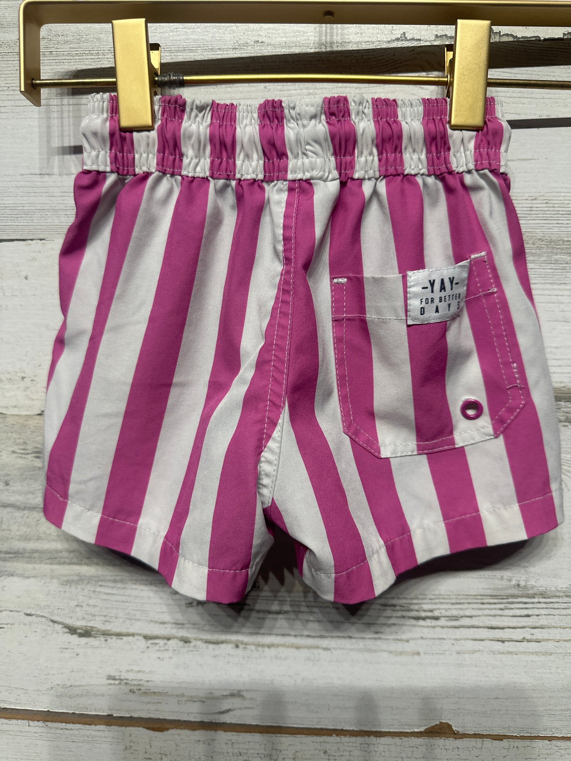 Cotton On Kids Size 2 Pink Striped Swim Trunks Play Condition*Small blue mark untreated