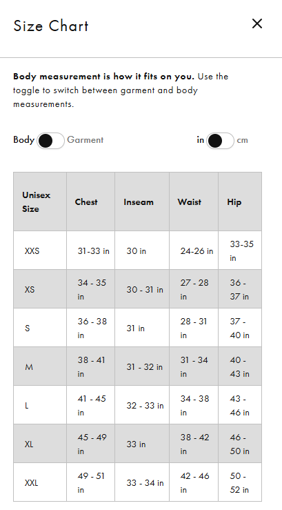 Size Chart in Photos