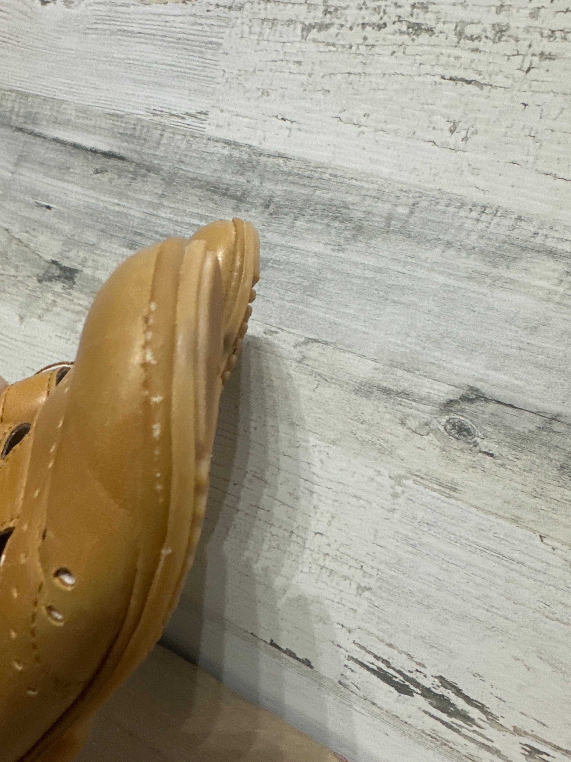 Size 5 Toddler Angel Baby Girls Mustard Golden Yellow T-Strap Mary Janes - Play Condition*toe scuffs / footbed discoloration